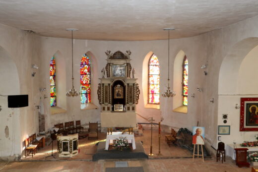 Krępcewo – ruiny zamku i kościół pw. Matki Boskiej Częstochowskiej